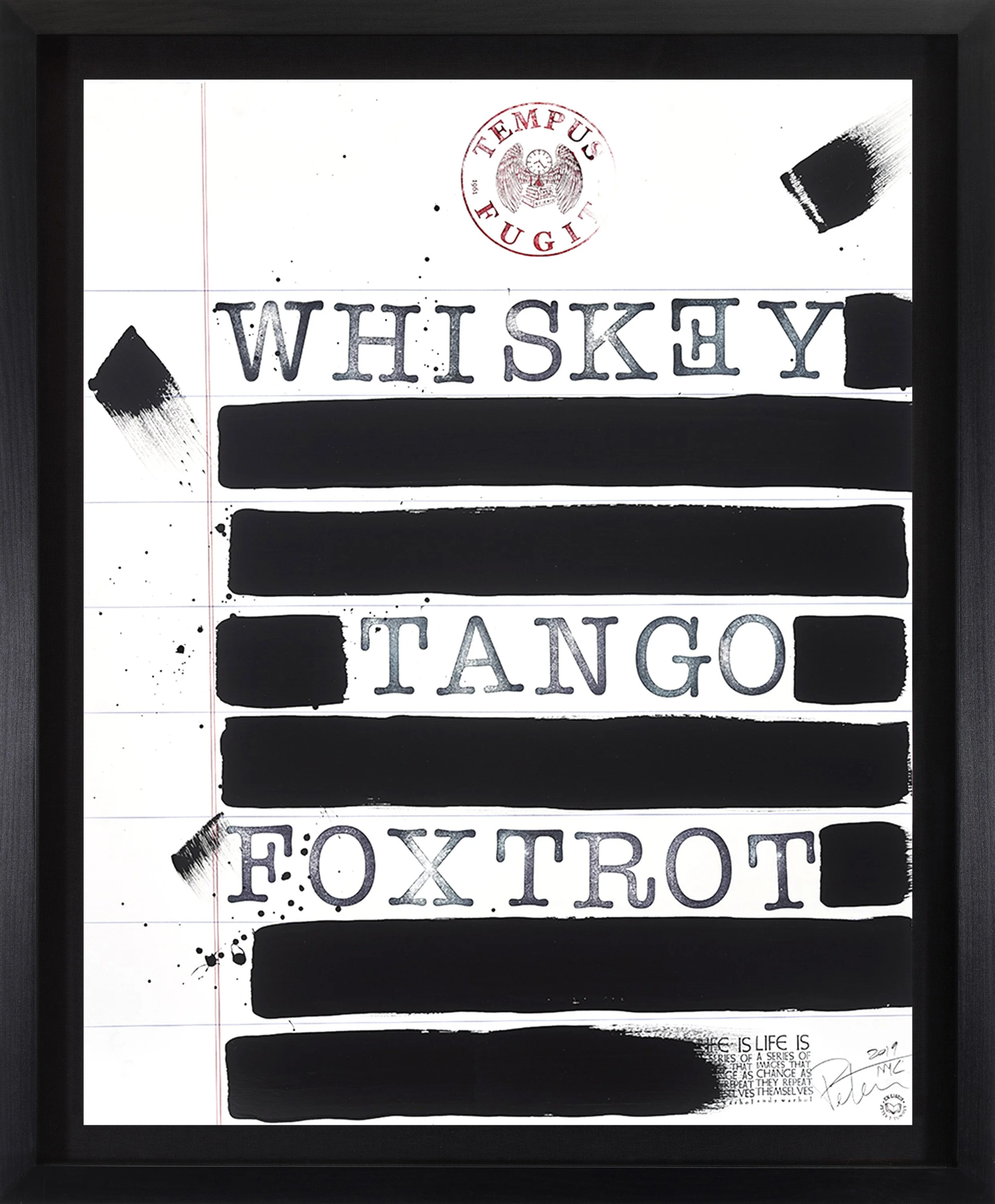Individually hand-stamped 4-ply museum board with archival ink, spray paint, and acrylic paint, signed and dated lower right by the artist, archivally mounted, lifted, and floated on linen in black hardwood frame46 x 38 inches